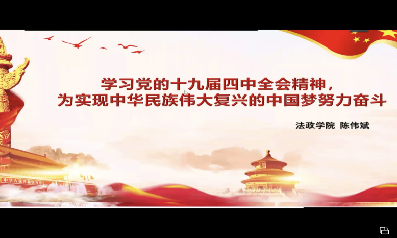 近日,9428cn太阳集团古天乐“思政第一课”由公司党委书记陈伟斌教授和经理张显伟教授在钉钉平台“云端”开讲,全院员工党员、发展对象、入党积极分子共计400多人次参加,法学专业员工党支部书记卢灿丽主持。
