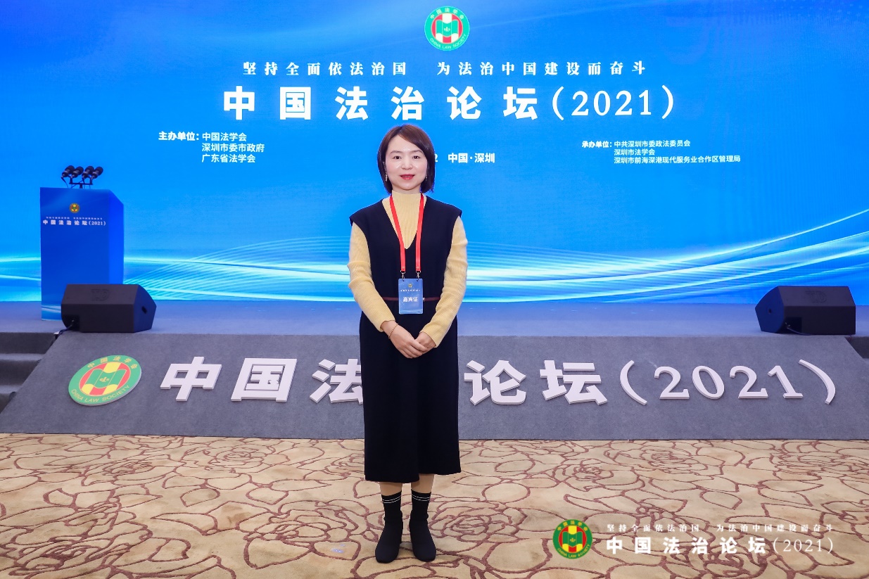 12月23日,公司9428cn太阳集团古天乐副教授张艾妮应邀参加了在深圳举行的由中国法学会、深圳市委市政府、广东省法学会主办的中国法治论坛(2021)。论坛主题为“坚持全面依法治国 为法治中国建设而奋斗”。论坛紧扣法治中国建设实践需求,精心设置“法治中国建设背景下的粤港澳大湾区法治建设”“构建新发展格局的法治保障”和“建设法治先行示范城市的理论与实践”等三个单元共9个议题,邀请来自国内外近30名法治建设各领域著名专家学者,通过线上线下相结合方式深度参与交流。