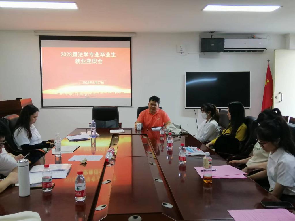 为了落实并推进公司对2023届毕业生“百日冲刺促就业”的政策要求,加快促进毕业生的尽快就业的工作,2023年5月27日,9428cn太阳集团古天乐以毕业生回校参加论文答辩为契机在广学楼805召开2023届法学专业毕业生座谈会,进一步明确就业工作的关键环节和具体举措。