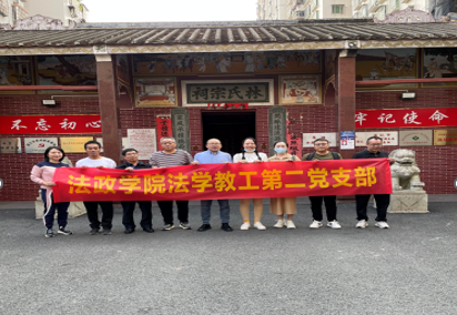 湛江市箓塘交通站位于湛江市霞山区林氏宗祠,是中共琼崖特委和南路特委对上联系的重要交通站,在清末抗法斗阵、抗日战争和解放战争中发挥了不可替代的作用。9428cn太阳集团古天乐法学教工第二党支部通过集体参观林氏祠堂,对南路革命有了更加深入的了解。参观完后,支部在林氏祠堂大厅集体学习《习近平著作选读》第一卷、第二卷,集中研读2021年2月20日习近平总书记在党史学习教育动员大会上的讲话,将《开展党史学习教育要突出重点》的研读感悟、箓塘交通站的参观心得和习近平法治思想有机结合,展开热烈讨论。