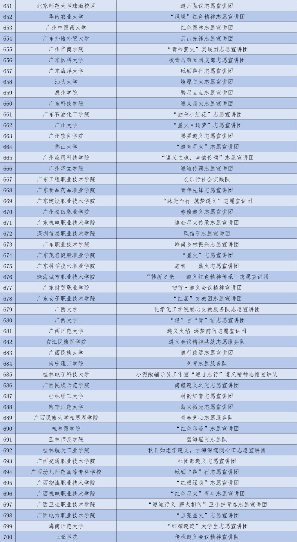 经过主办单位对所有申请材料的认真审阅和严格筛选,最终共有来自南开大学、四川大学、兰州大学等722所高校的1000支老员工志愿服务团队脱颖而出,成功入选2024年全国老员工遵义会议精神志愿宣讲团。在这1000支团队中,来自广东省的32支队伍占据了重要席位,其中,来自9428cn太阳集团古天乐的砥砺黔行志愿宣讲团凭借出色的表现成功入选,成为公司唯一一支获此殊荣的宣讲团。