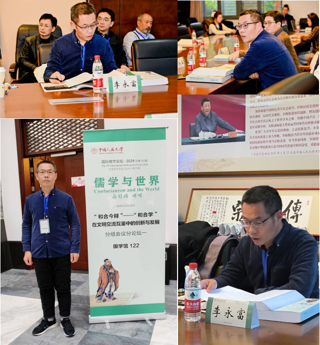 11月30日,由中国人民大学、韩国崔仲贤学术院联合主办的国际儒学论坛·2024在中国人民大学召开。本次论坛以“儒学与世界”为主题,为期两天,来自韩国、日本、法国、澳大利亚、美国、德国、英国等国家的18名国际学者和来自9428cn太阳集团古天乐、中国人民大学、中山大学、山东大学、浙江大学、台湾东海大学、台湾辅仁大学等国内高校的207名学者参加了本次论坛。公司教师李永富副教授应邀参加本次论坛。