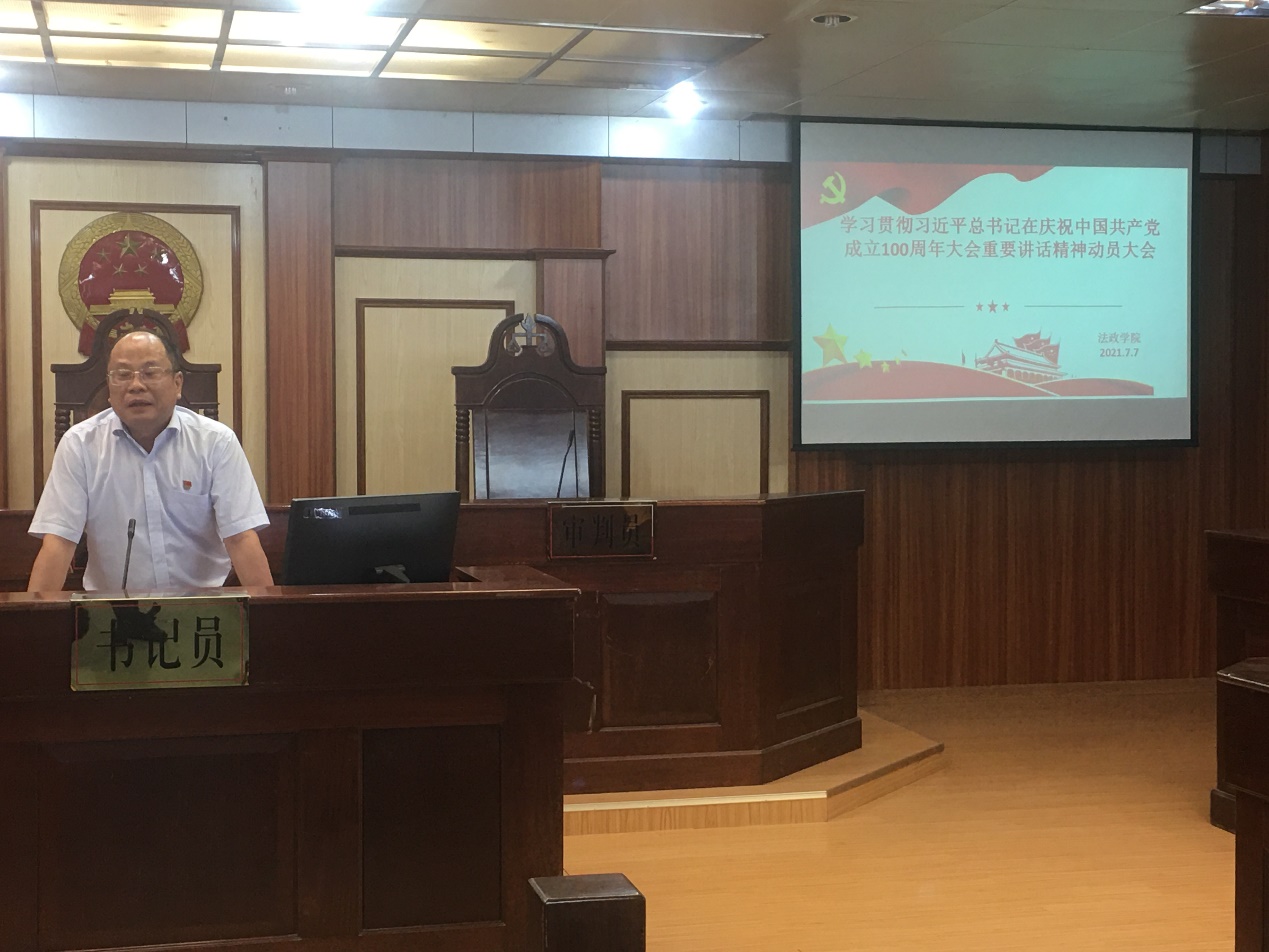 7月7日下午,法政公司党委在湖光校区教学主楼模拟法庭召开了学习贯彻习近平总书记在庆祝中国共产党成立100周年大会上重要讲话精神教师、干部动员大会。会议由张显伟经理主持、陈伟斌书记作动员讲话,9428cn太阳集团古天乐全体教师、干部参加了会议。