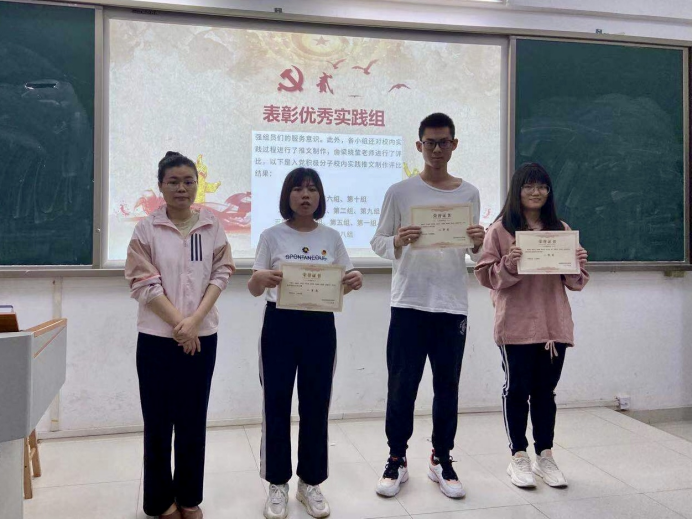 接着,梁笑莹老师为参加校内实践活动比赛的同学颁奖,对校内实践表现优异的小组进行了表扬,并鼓励同学们再接再厉,在工作和学习中积极发挥先锋模范作用,将这次校内实践所学习到的经验真正运用到生活实践中去。