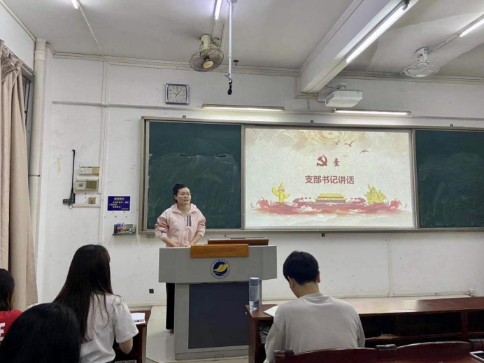 会议活动首先由党支部书记梁笑莹老师讲话,她指出,今年是中国共产党成立100周年,党的一百年,是矢志践行初心使命的一百年,是创造辉煌开辟未来的一百年,同学们要积极响应号召,加强党史的学习,进一步坚定理想信念、砥砺忠诚干净担当品格,吸取开拓奋进的勇气和力量,做到不忘初心、牢记使命,在工作和学习中以优异的成绩迎接建党一百周年。同时,梁笑莹老师还嘱咐,入党积极分子作为党员的后背军,要继续加强要求自己,积极参加党支部的培训,主动学习党的理论知识,增强对党史的了解,在学习和生活方面都不能有所松懈应更严格地要求自己,并建议同学们利用网络资源,观看例如《国家宝藏》等优质专题纪录片。